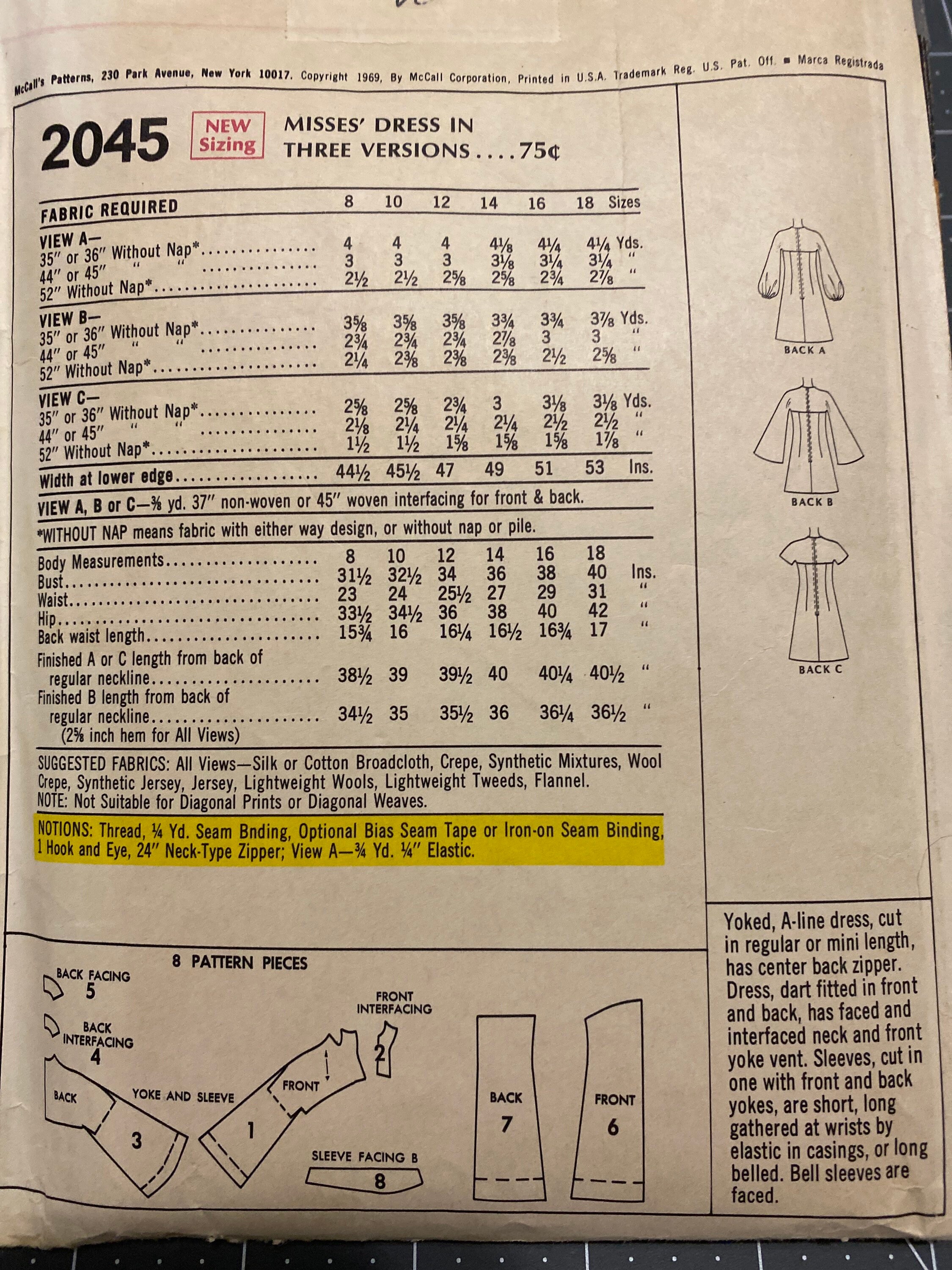 Vintage 60s Mccall S 2045 Dress Sewing Pattern Size 12 Etsy